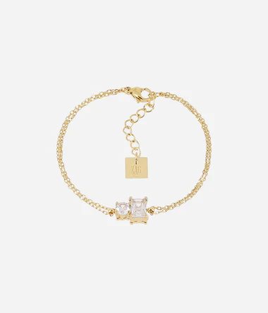 Bracelet en acier uni ou doré à l’or fin par ionisation, sur lequel se trouve un zirconium rectangulaire et un éclat rond.
