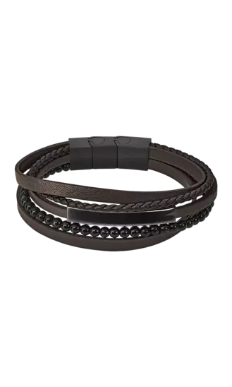 Bracelet Lotus Style cuir & acier