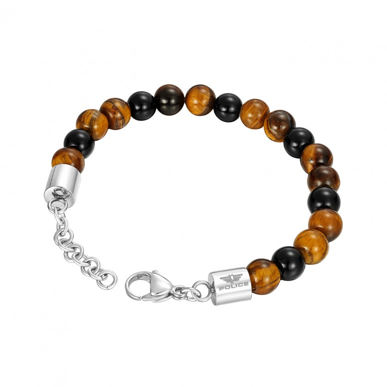 Bracelet Police acier, oeil de tigre & obsidienne