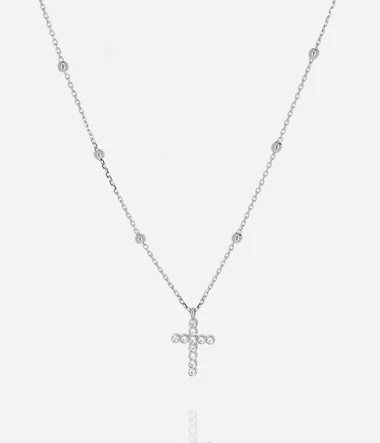 Collier en acier uni ou doré à l’or fin par ionisation serti d’une croix en zirconiums.