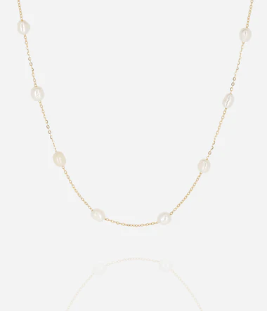Collier en acier uni ou doré à l’or fin par ionisation serti de perles.